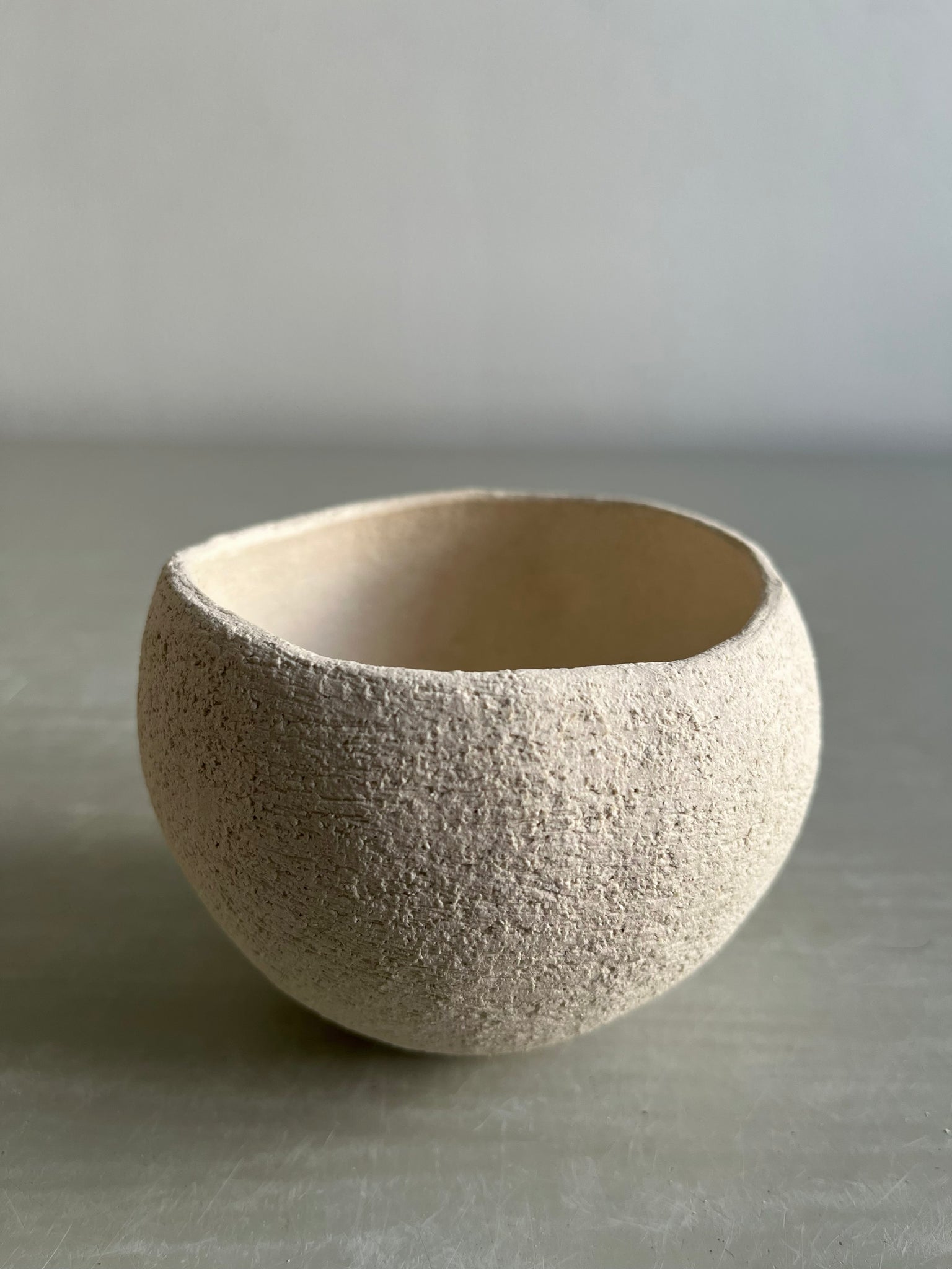 Handmade, pinched sculptural bowl in white stoneware clay. No glaze.