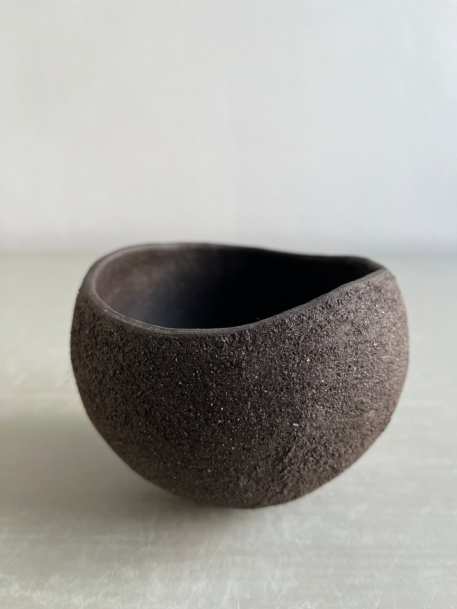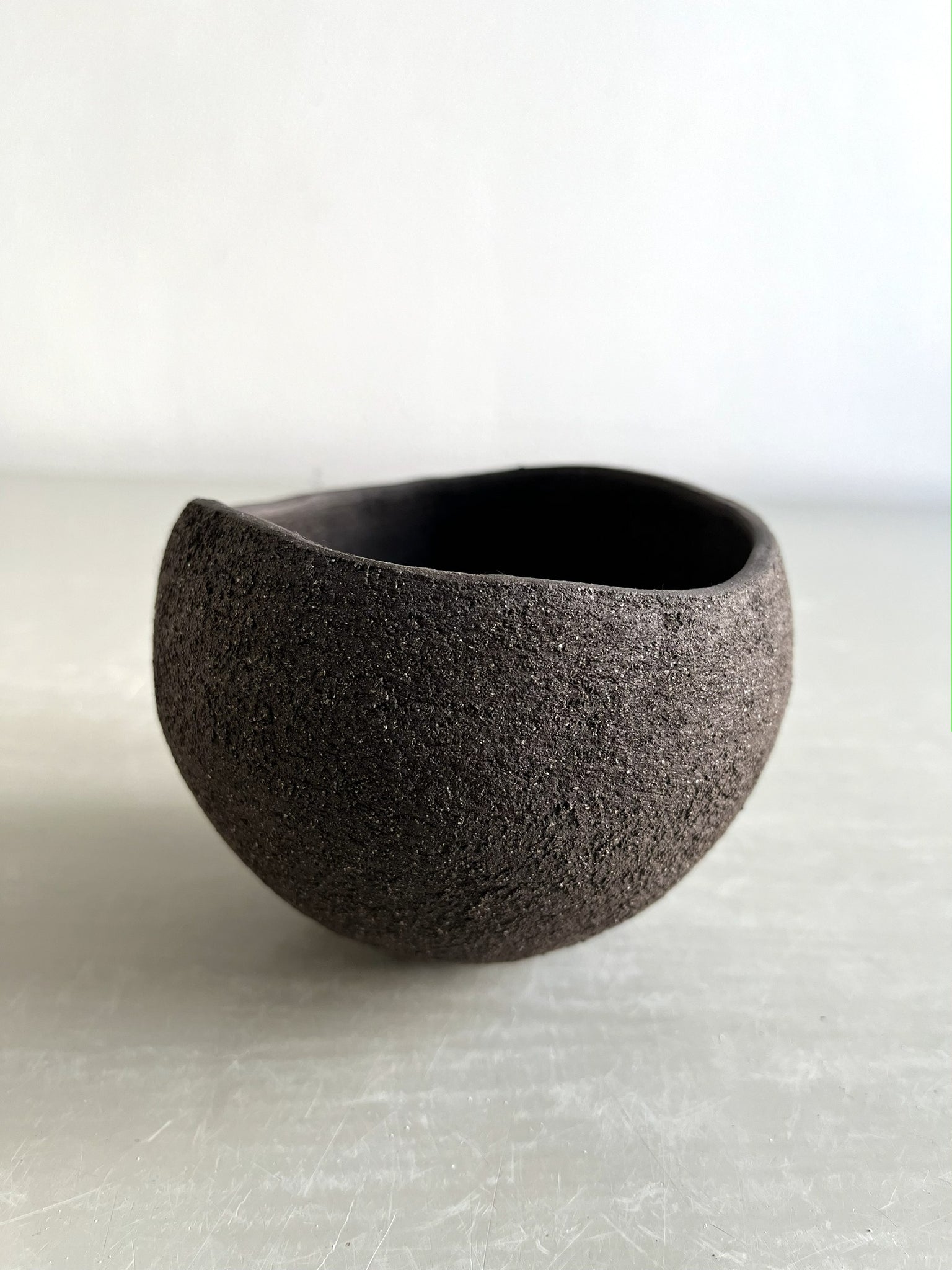Handmade, pinched sculptural bowl in black clay. Burnished and polished with beeswax on the inside. No glaze.